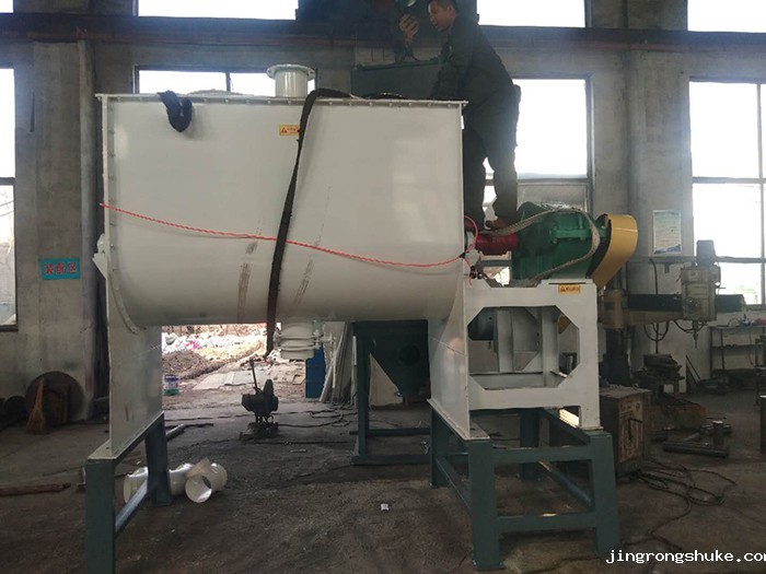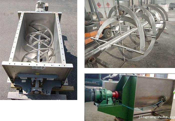 卧式混料机由U形容器、螺带搅拌叶片和传动部件组成;螺带状叶片一般做成双层或三层,外层螺旋将物料从两侧向中间汇集,内层螺旋将物料从中间向两侧输送,形成对流混合。 螺带混合机对于粘性或有凝聚性的粉粒体的混合以及粉粒体中添加液体及糊状物料的混合有良好的效果,筒盖可做成全开式门,以便于对设备进行清洗更换产品。